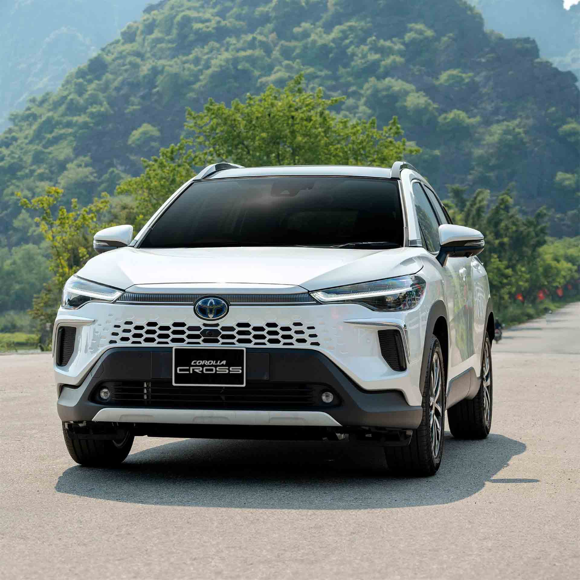 Toyota Corolla Cross 1.8V màu trắng thực tế với thiết kế gầm cao, phong cách trẻ trung trong phân khúc SUV đô thị. Toyota Corolla Cross 1.8V là phiên bản cao cấp sử dụng động cơ xăng 1.8L, công suất 138 mã lực, mô-men xoắn 172 Nm, hộp số tự động vô cấp CVT. Xe được nhập khẩu từ Thái Lan và trang bị loạt công nghệ an toàn Toyota Safety Sense (phanh tự động, ga tự động thích ứng, cảnh báo chệch làn, v.v.).